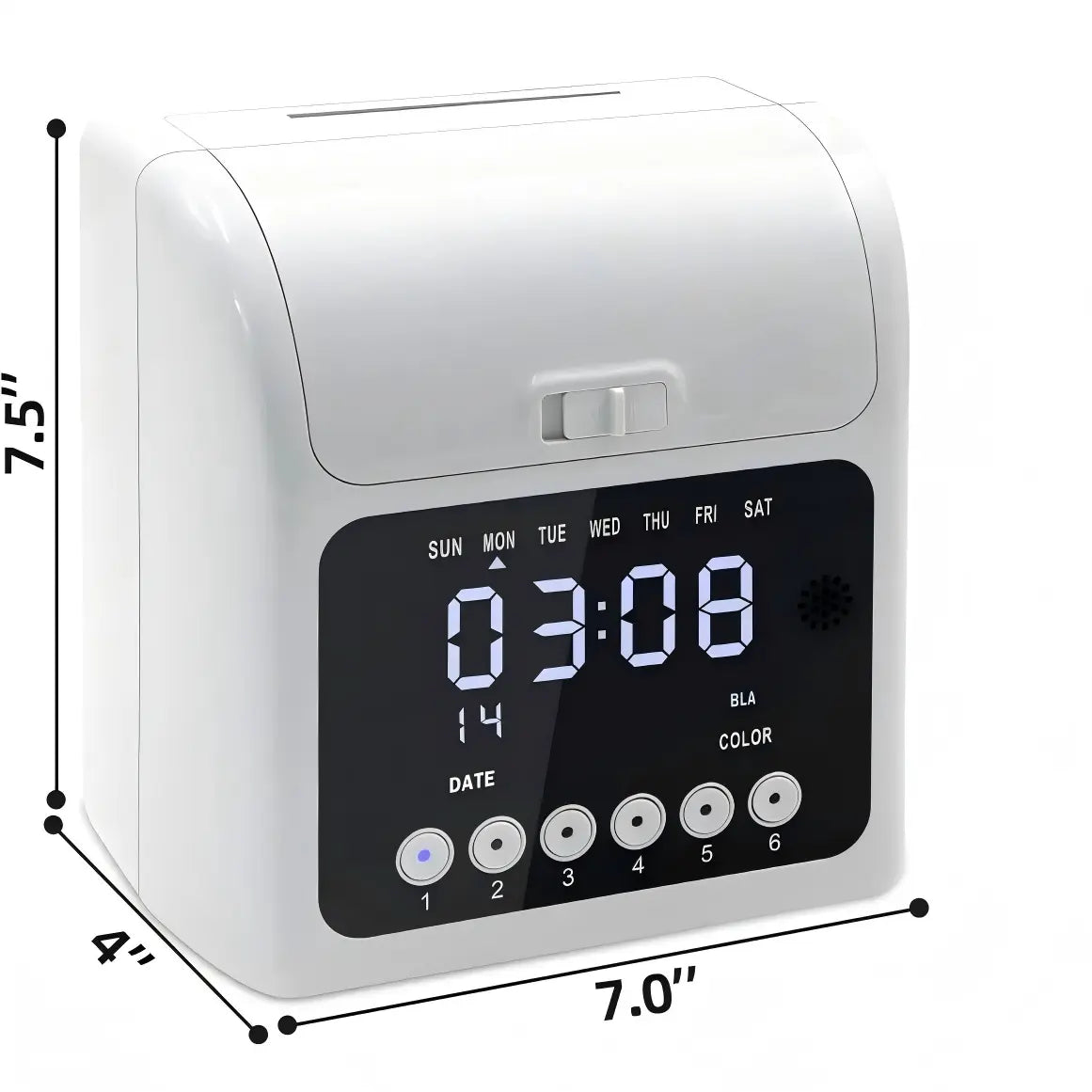 The TimeMaster Digital Time Clock provides secure and efficient employee time tracking for small to medium-sized businesses. With PIN-based authentication, employees clock in and out using a 4–6 digit code, helping prevent buddy punching and improving attendance accuracy.